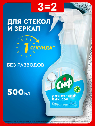 Сиф Средство для стекол и зеркал Ультра Блеск Легкость чистоты и сияние без разводов спрей, 500 мл