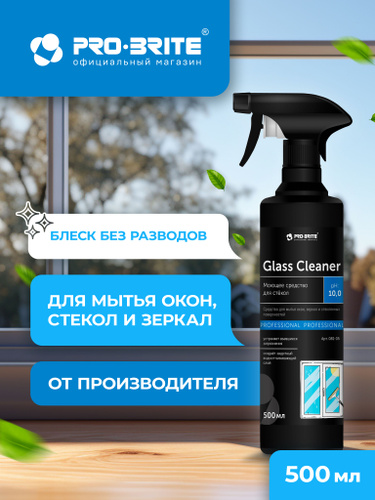 Средство для мытья окон, стекол и зеркал без разводов GLASS CLEANER Pro-brite 500 мл.