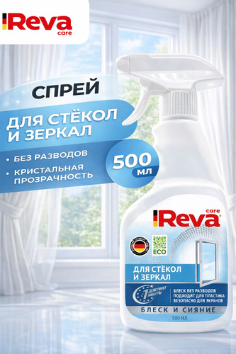 Средство для мытья стекол, окон и зеркал, Reva Care 500 мл