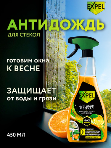 Спрей для мытья стекол и зеркал Expel АНТИДОЖДЬ, Свежий цитрус, очиститель окон, 450 мл