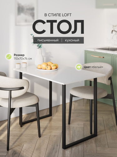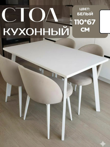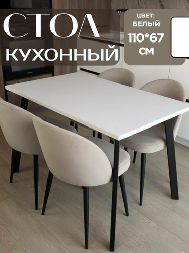Стол кухонный обеденный нераздвижной, Прямуогольный, ЛДСП, Белый, ДхШхВ: 110x70x74 см