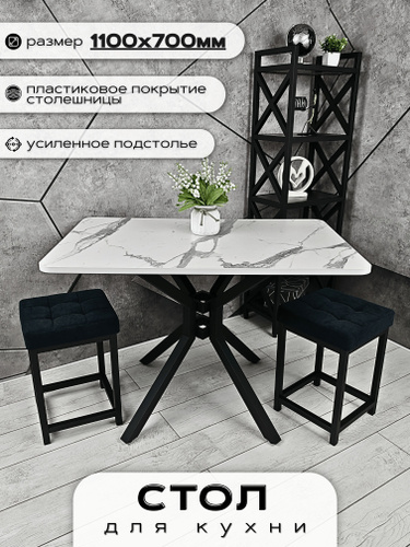 Стол кухонный ,стол обеденный прямоугольный нераскладной Мрамор Белый 110х70х75