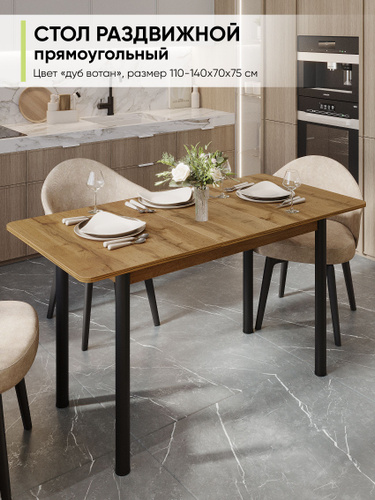 Стол кухонный обеденный раздвижной Прямоугольный, Дуб вотан, ЛДСП, ДхШхВ: 110-140х70х75 см
