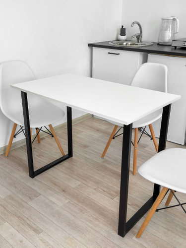 Стол кухонный Домотека прямоугольный Альфа ПР-М БЛ 04 БЛ нераскладной, обеденный для кухни, лофт, 90х60х75 см, белый, столешница ЛДСП