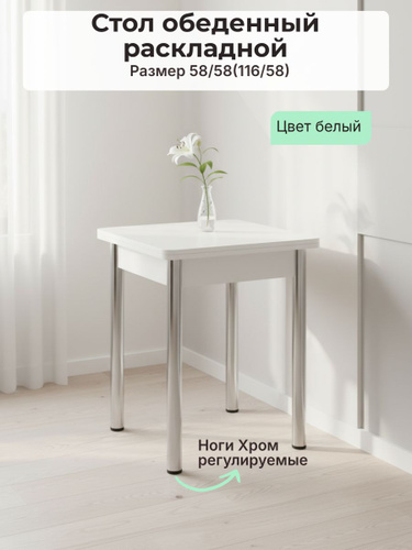 CUBE,Стол обеденный раскладной,112х75,6х75см,белый
