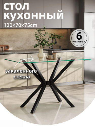 Стол кухонный, 120*70*75cmH, закаленное стекло, чёрный