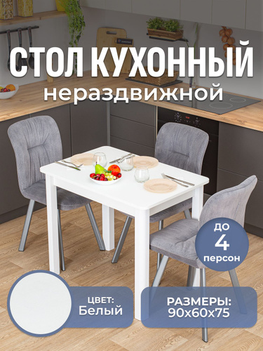 Стол кухонный обеденный белый Моё Credo нераздвижной нераскладной 90*54*75 см