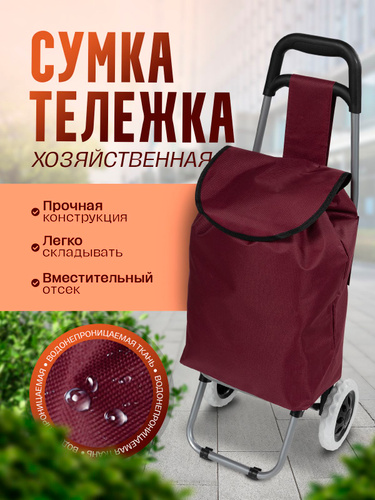 Сумка тележка хозяйственная на колесах высота 94см, объем 30 л, нагрузка 30 кг, 55х32х23см, диаметр колеса - 16см, складная