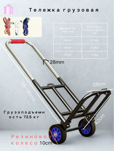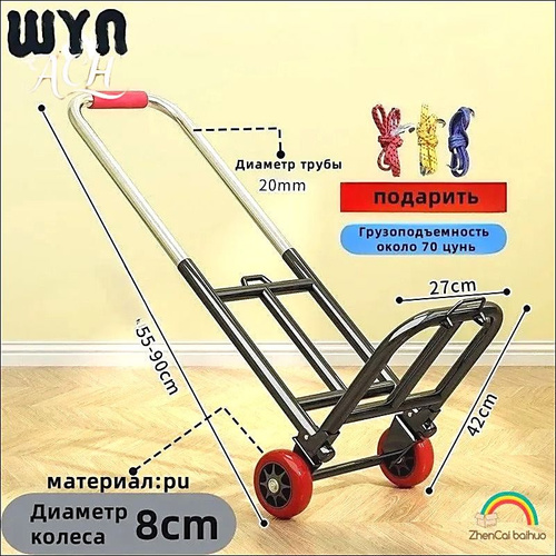 Тележка для сумки на колесиках, 87x34,5x28см, хозяйственная, для покупок, сумок, перевозки вещей
