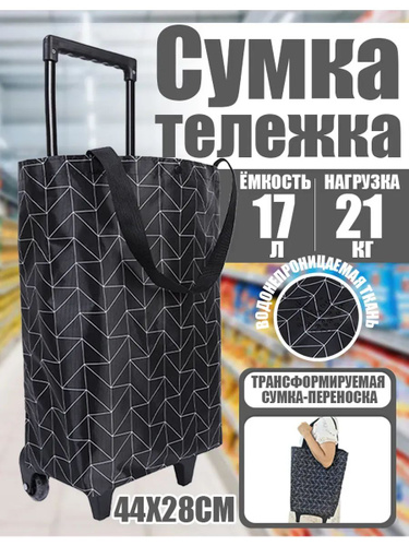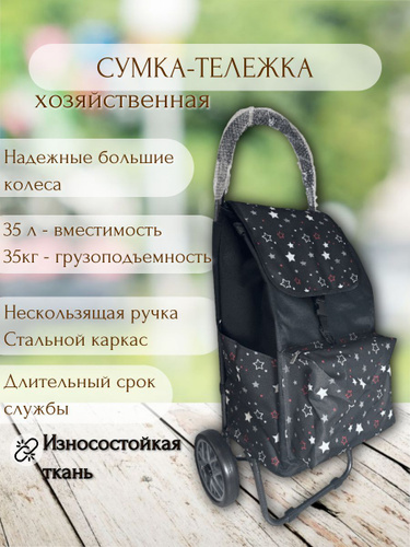 Сумка тележка на колесах "Сириус", черная, колеса 5см, грузоподъемность до15кг