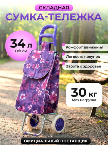 Тележка + сумка VETTA, до 10кг, 33х26х82см, 16л, ткань оксфорд, колеса ЭВА d13см