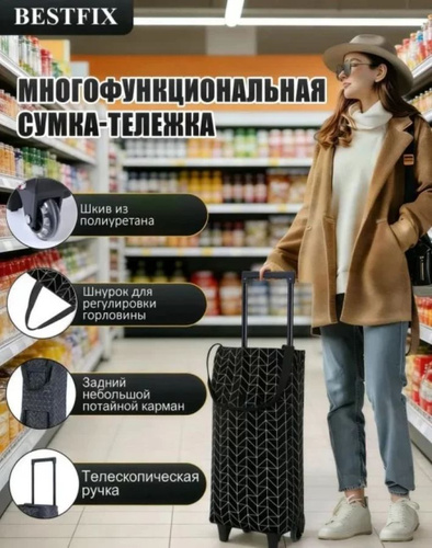 Сумка-тележка на колесах хозяйственная 46 литров/ до 57 кг,Немецкое качество