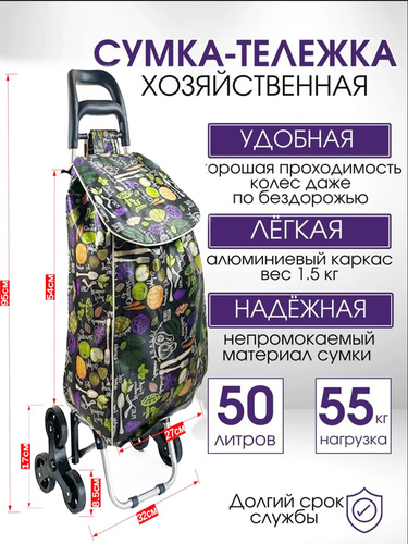 Сумка-тележка хозяйственная 50 литров/до 60 кг,Немецкое качество
