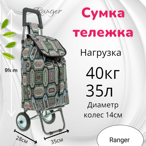 Тележка + сумка, до 20кг, 84x32x28см, 29 л, оксфорд, колеса ЭВА d14см VETTA