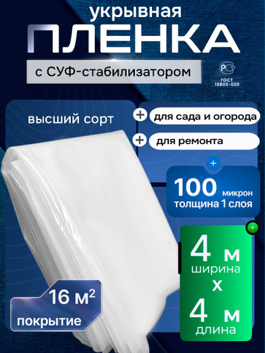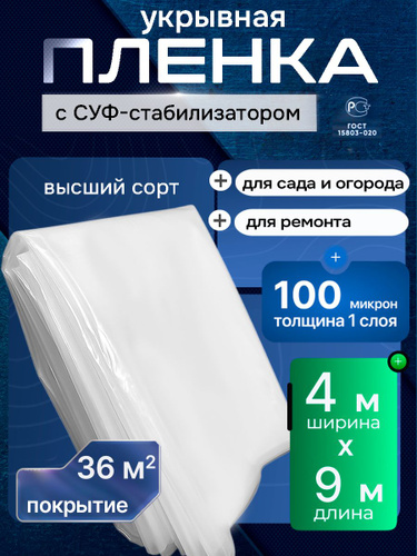 Пленка для теплиц и парников, пленка укрывная для ремонта 100 мкм, 4х9м