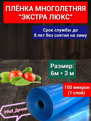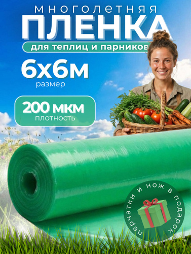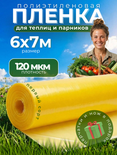 Парничок Пленка для теплиц ПЕВА (полиэтиленвинилацетат), Полиэтилен, 6x7 м, 150 г-кв.м, 150 мкм, 1 шт