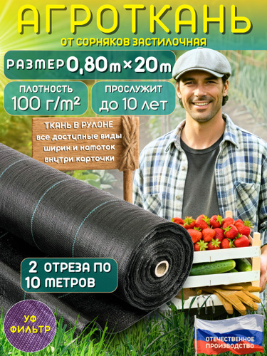 Агроткань от сорняков 100 г/м2 (0.55х20) для дорожек, грядок черная застилочная/ укрывной материал для растений дома и дачи садовый мульчирующий/ агроволокно для теплиц, клубники с разметкой в рулоне