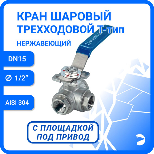 Newkey Кран шаровый стальной трехходовой (T-тип) нержавеющий, AISI304 DN15 (1/2"), (CF8), PN64