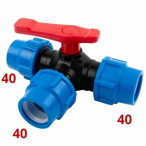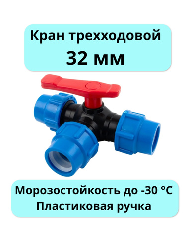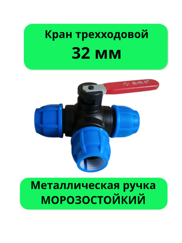 Трехходовой шаровой кран ПНД 32 мм для воды,1 штуки