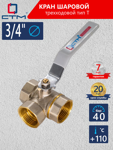 Кран шаровой трехходовой T-образный 3/4" СТМ