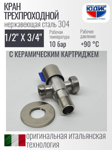 Трехходовой шаровой кран + Латунный 1/2" + Для воды, воздуха и других жидкостей