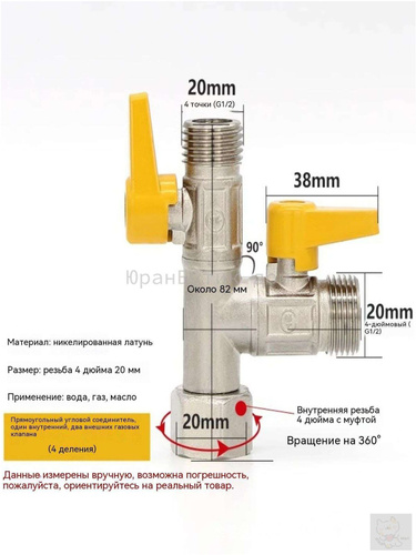 Универсальный латунный тройник кран 1/2 для воды газа и масла