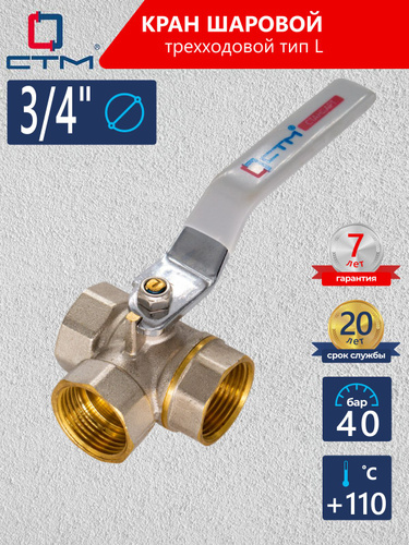 Кран шаровой трехходовой L-образный 3/4" СТМ