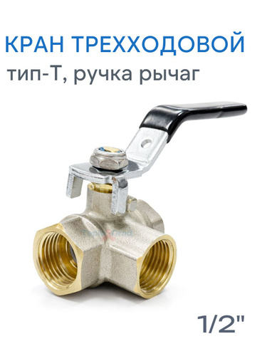Кран трехходовой 1/2", тип т, Ручка-рычаг, резьба Внутренняя,