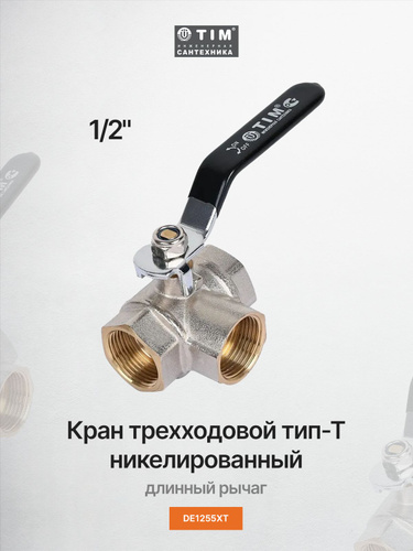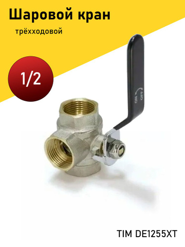 Кран шаровый TIM трехходовой ВВВ 1/2 тип-Т, ручка рычаг