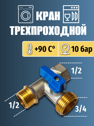 Кран шаровый трехпроходной для сантехнических приборов 1/2"-3/4"-1/2"