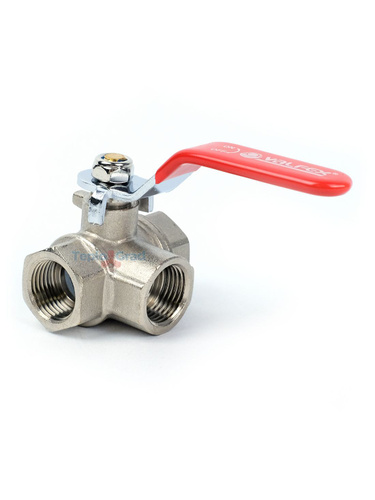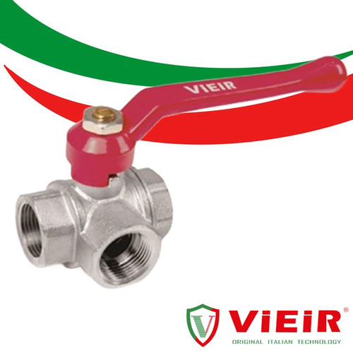 Кран шаровой трехходовой тип L 1/2" вн.-вн.-вн. Valtec VT.360.N.04 / Латунный трехходовой кран ДУ20 для систем водоснабжения, отопления