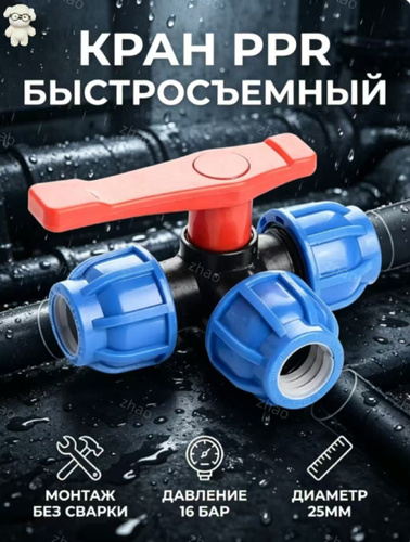 Премиальный шаровой кран 25 мм ПНД для воды, трехходовой