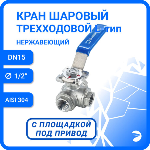 Newkey Кран шаровый стальной трехходовой (L-тип) нержавеющий, AISI304 DN15 (1/2"), (CF8), PN64