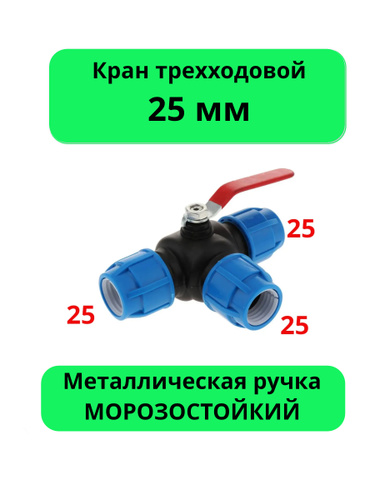 Трехходовой шаровой кран ПНД 25 мм для воды,1 штуки