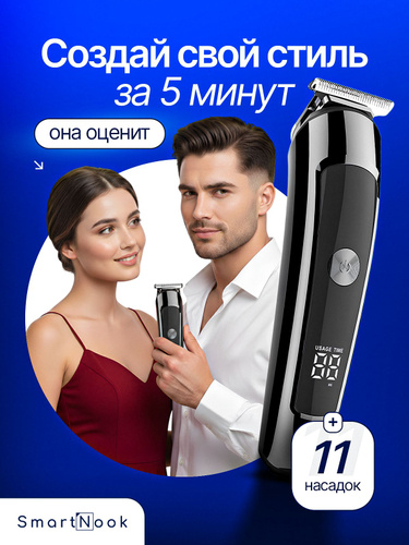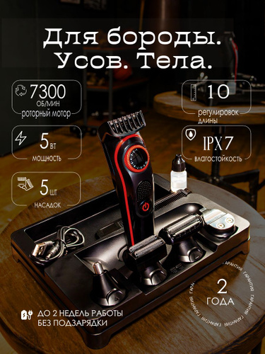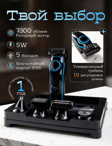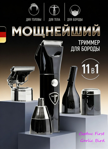 Триммер для бороды и волос / тример-бритва мужская, 11 насадок