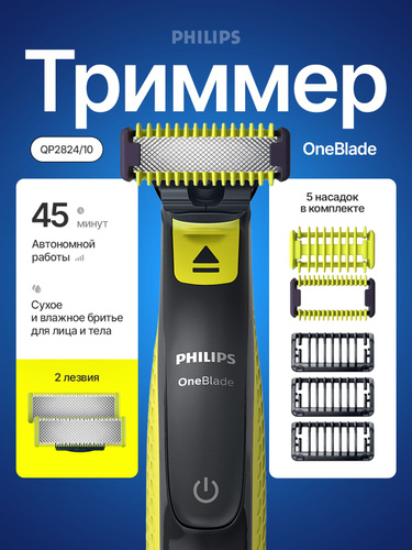 Philips бритва триммер OneBlade QP2824/10, с 2 сменными лезвиями и 5 насадками