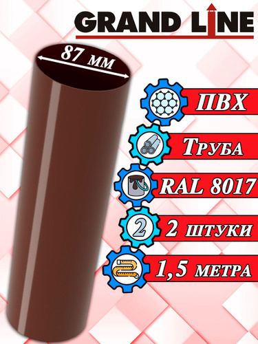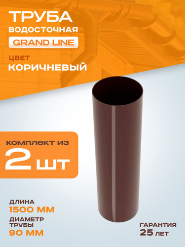 Труба 1,5 м 2 штуки Grand Line ПВХ шоколад RAL 8017 для водосточной системы, Гранд Лайн (120/90) коричневый элемент водостока для крыши