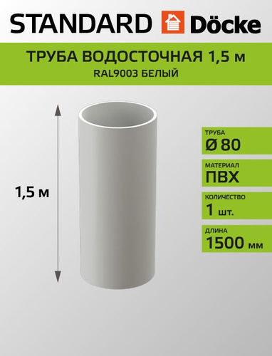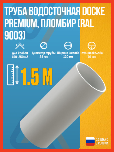 Труба водосточная Docke Premium, пломбир (RAL 9003), 1.5 м / Труба водосточная ПВХ Деке Премиум