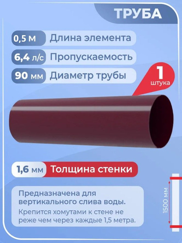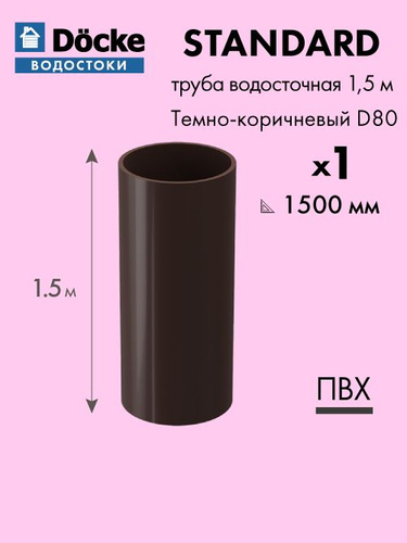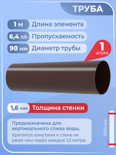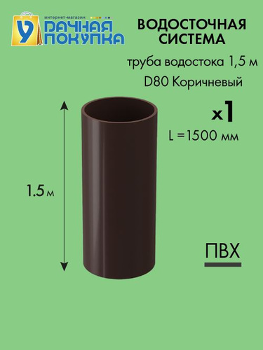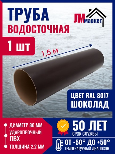 Труба водосточная, 80 мм, цвет шоколад RAL 8017, 1 шт х 1,5 м, элемент пластиковой водосточной системы