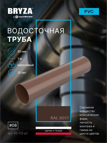 Водосточная труба 90 мм / 1 м коричневая BRYZA 62-112-р1