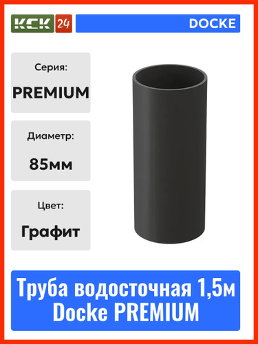 Труба водосточная 1,5 м Docke PREMIUM (графит) D85 мм / Труба водостока Деке Премиум RAL 7024 темно-серый