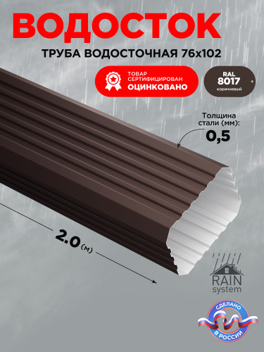 Труба водосточная 1.5м 120/80, цвет - коричневый / Водосток для крыши дома Удачная покупка