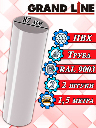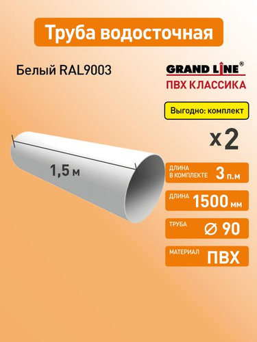 Труба водосточная 1.5м, D90 Гранд Лайн (Классика) белый RAL 9003 / Водосток пластиковый Grand Line 120/90 (упаковка 2 шт)