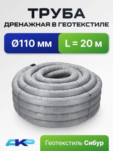 Труба дренажная 110 мм в геотекстиле Сибур, 20 метров в фильтре с перфорацией