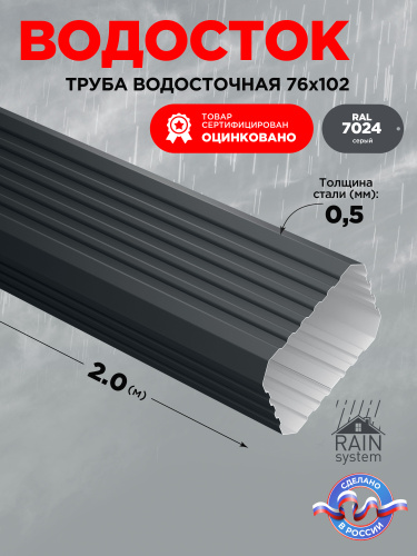 Труба 2 Метра круглая соединит., 90, металлической водосточной системы RAIN SYSTEM, цвет 7024, 1 штука