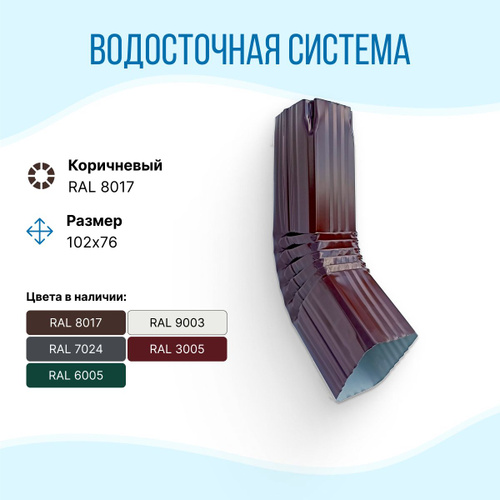 Труба с коленом для водосточной системы прямоугольного сечения 76х102 Шоколад RAL 8017