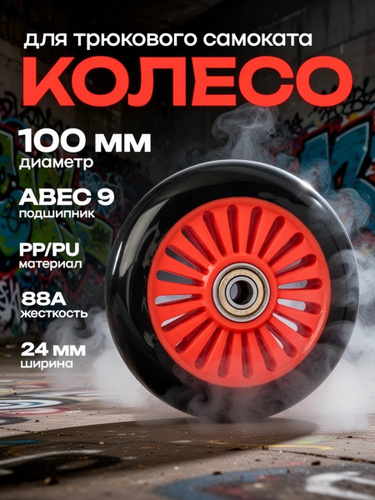 Колесо с подшипником ABEC-9 для трюкового самоката 100 мм, обод пластиковый высокопрочный, красный / 1 шт.