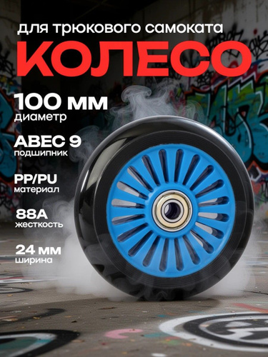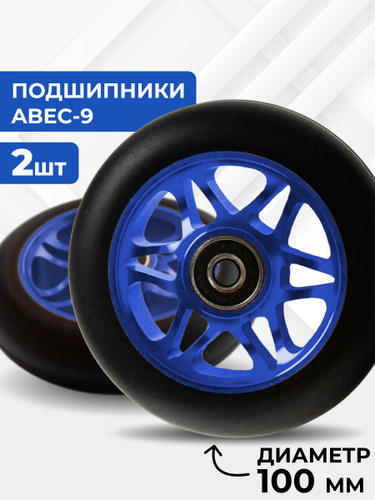 Колесо с подшипником ABEC-9 для трюкового самоката 100 мм, обод пластиковый высокопрочный, синий / 1 шт.