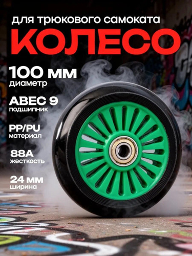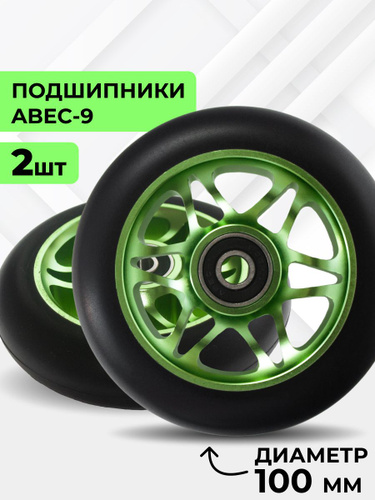 Колесо PU для трюкового самоката 100мм, обод пластиковый зеленый с подшипниками ABEC-9