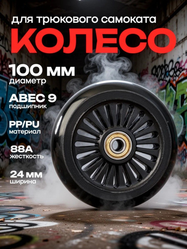 Колесо с подшипником ABEC-9 для трюкового самоката 100 мм, обод пластиковый высокопрочный, черный / 1 шт.
